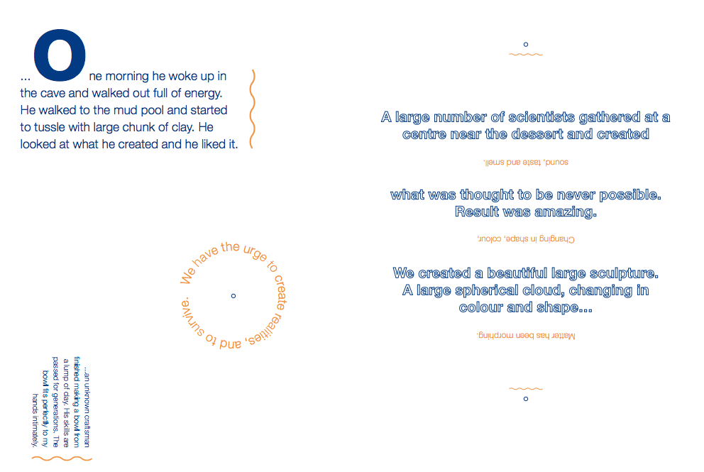 A large number of scientists gathered at a centre near the dessert and created what was thought to be never possible. Result was amazing. We created a beautiful large sculpture. A large spherical cloud, changing in colour and shape...