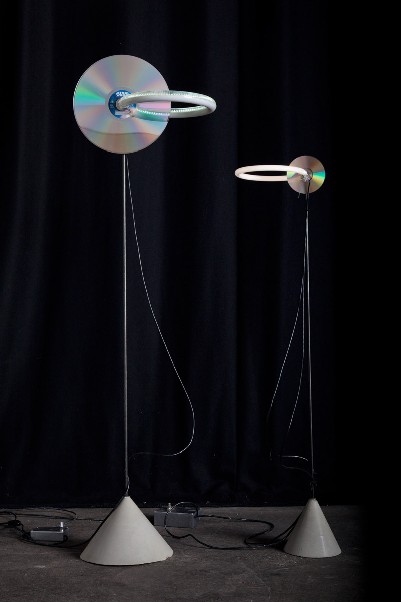 Circular LED light tube, circular fluorescent light tube, steel, concrete base, Star Wars Original – Special Edition Laserdisc, Star Wars Episode I: The Phantom Menace DVD