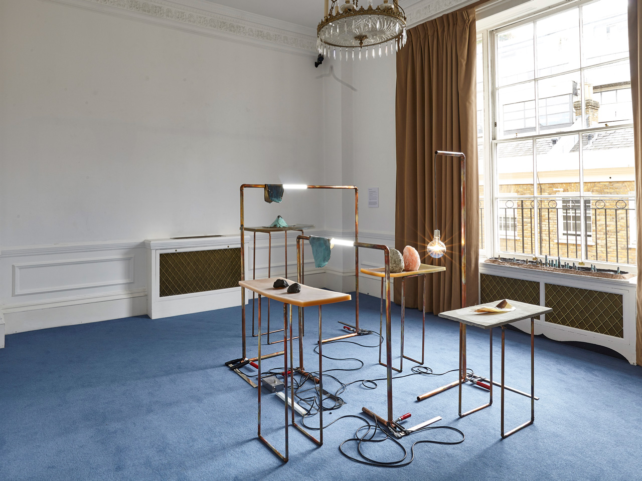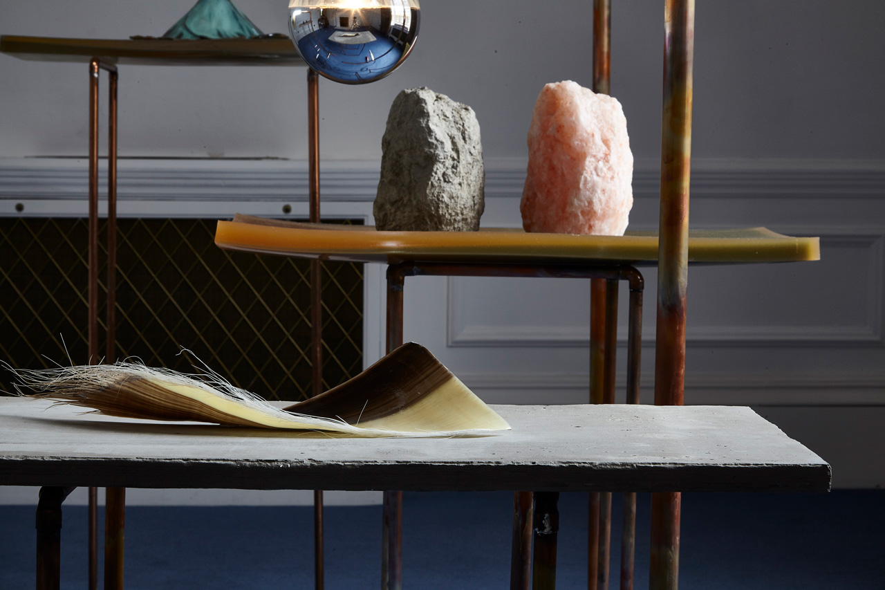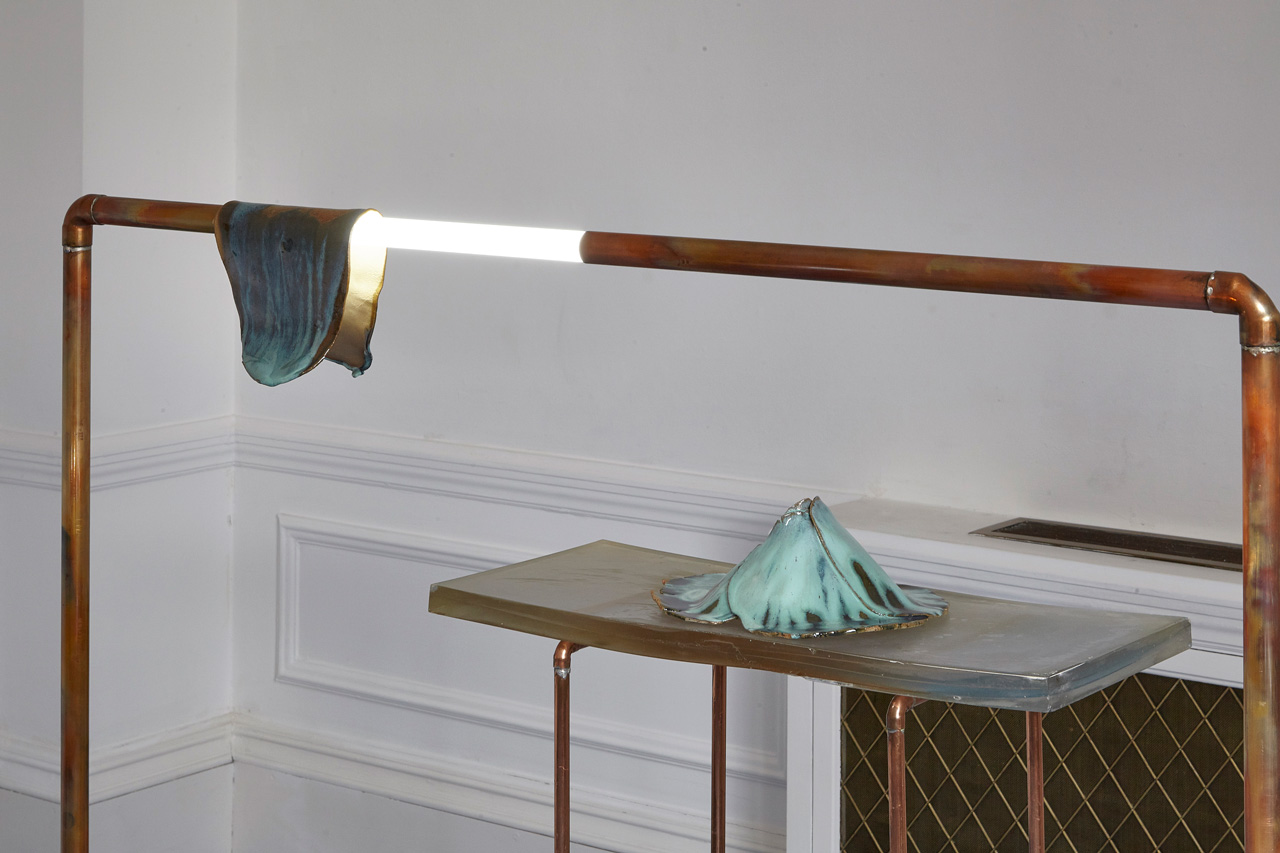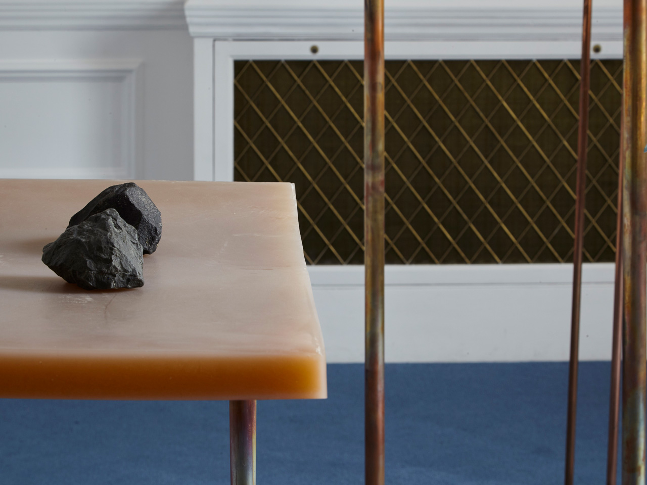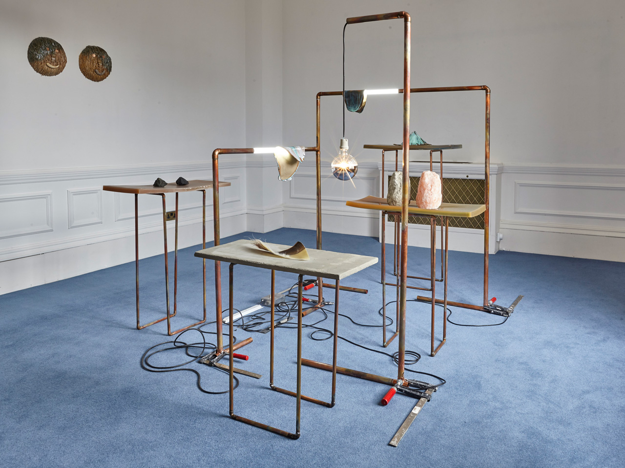 Installation view - Volcanoe on cast resin table top with heated copper tubings