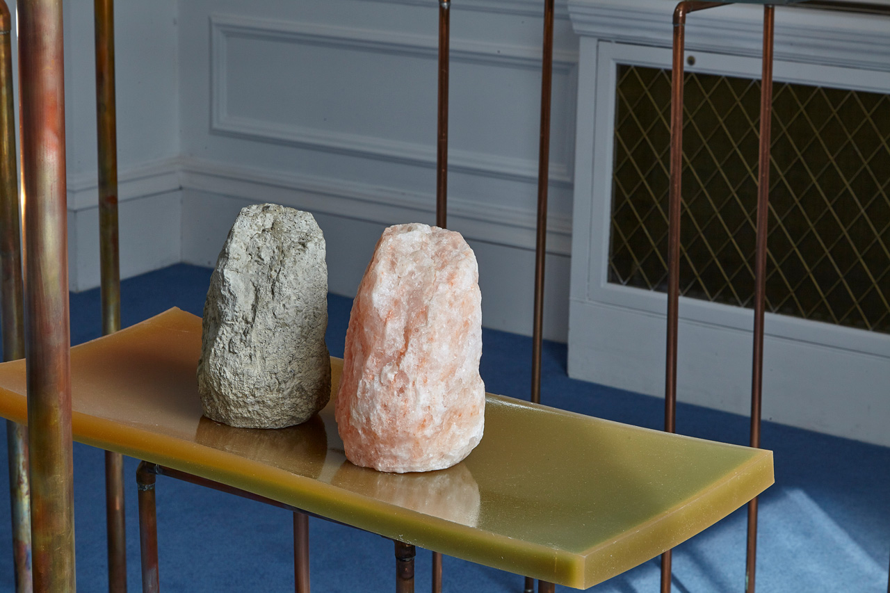 Installation view - 200 million year old rock salt and concrete replica with added salt