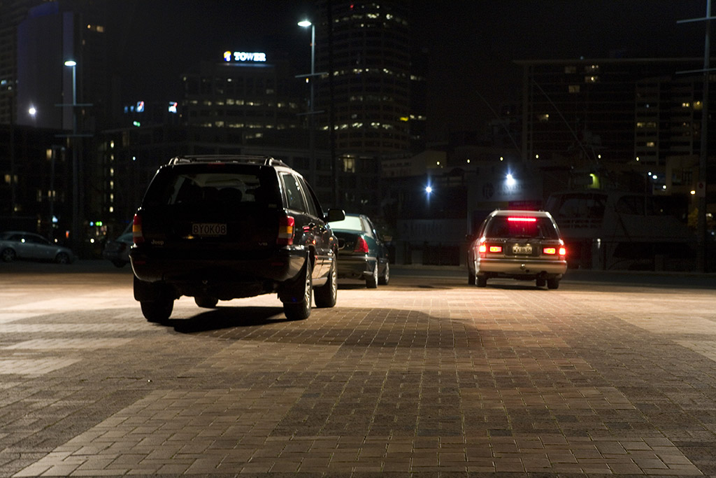 Shot with three high definition cameras connected to each other on a steel rod, the images of Palarell Parking are structured in three distinctive pieces. Seen in an exhibition space it could remind the viewer of the classic structure of a triptych – a in three panels divided art work that can usually be found behind the altar of Christian churches. It commonly represents saints and serves as a place of worship and votive offering.